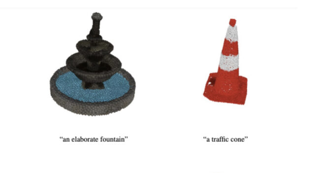 Point-E doesn’t go right from text to a 3D mesh — it’s actually composed of two different AI models. First, a text-to-image AI processes the prompt to make a standard 2D image. Then, an image-to-3D AI swings into action to turn the flat rendering into a 3D model. So, if you were to ask Point-E to make a traffic cone, it would start with a stripey triangle. It’s up to the second AI to understand that traffic cones are cones to produce the correct 3D shape.