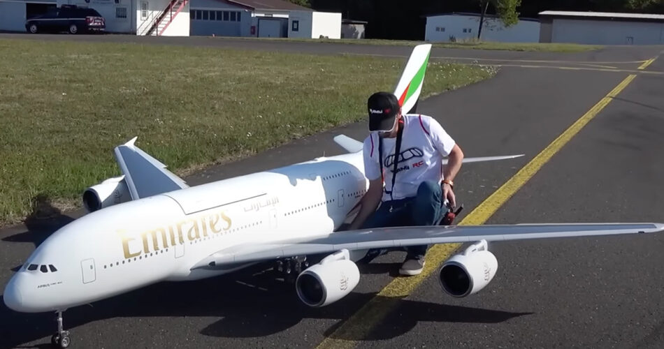 You’ve seen the A350’s hidden electronics room, now check out a massive remote-controlled Airbus A380 built by Ramy RC. There are pre-built kits out there, but Ramy spent an entire year building this jumbo jet that weighs in at a hefty 55.1-pounds and has a wingspan of 12.7-feet while measuring 11.8-feet long.