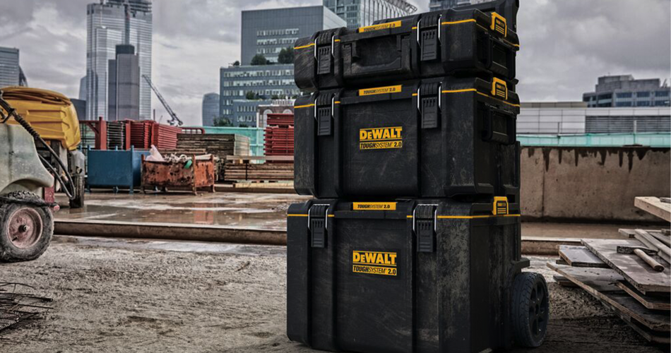 he DeWalt ToughSystem 2.0 toolbox set in a construction yard.