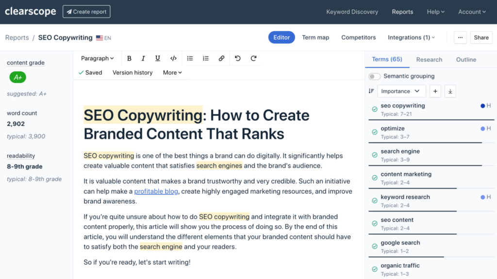 - Optimize: Nice-tune your content material utilizing search engine marketing greatest practices and copywriting instruments.