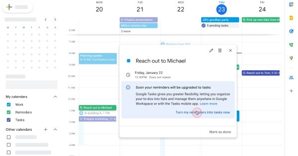 - For those who haven’t already migrated, Assistant and Calendar reminders will start to mechanically migrate in Q2. We’ll share extra info on this timeline in a future replace on the Workspace Updates weblog.