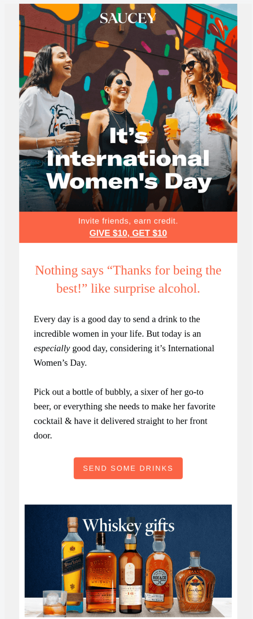 It is a nice, enjoyable electronic mail that goals to have fun IWD with out being overly critical about it. Right here, they’re utilizing a Give X, Get X promotion. This electronic mail is most certainly segmented for males.