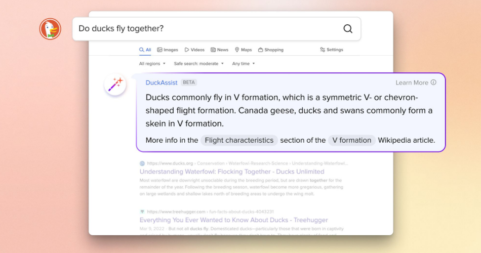 DuckDuckGo Inc. at the moment launched DuckAssist, a brand new function in its search engine that generates pure language responses to consumer questions.