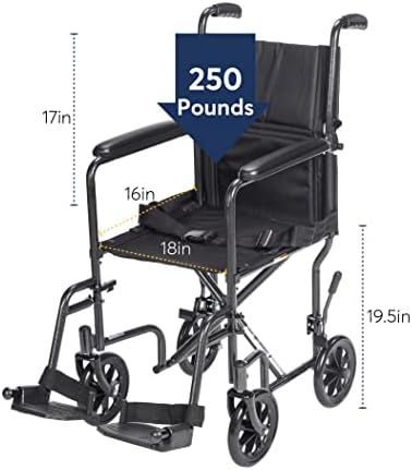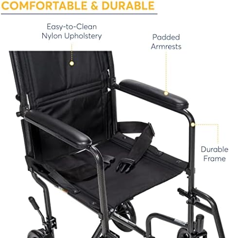 Comfy and Simple to Clear: This ultralight transport chair comes outfitted with a 17-inch easy-to-clean padded nylon seat designed to offer lasting consolation