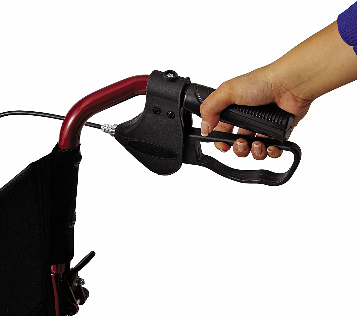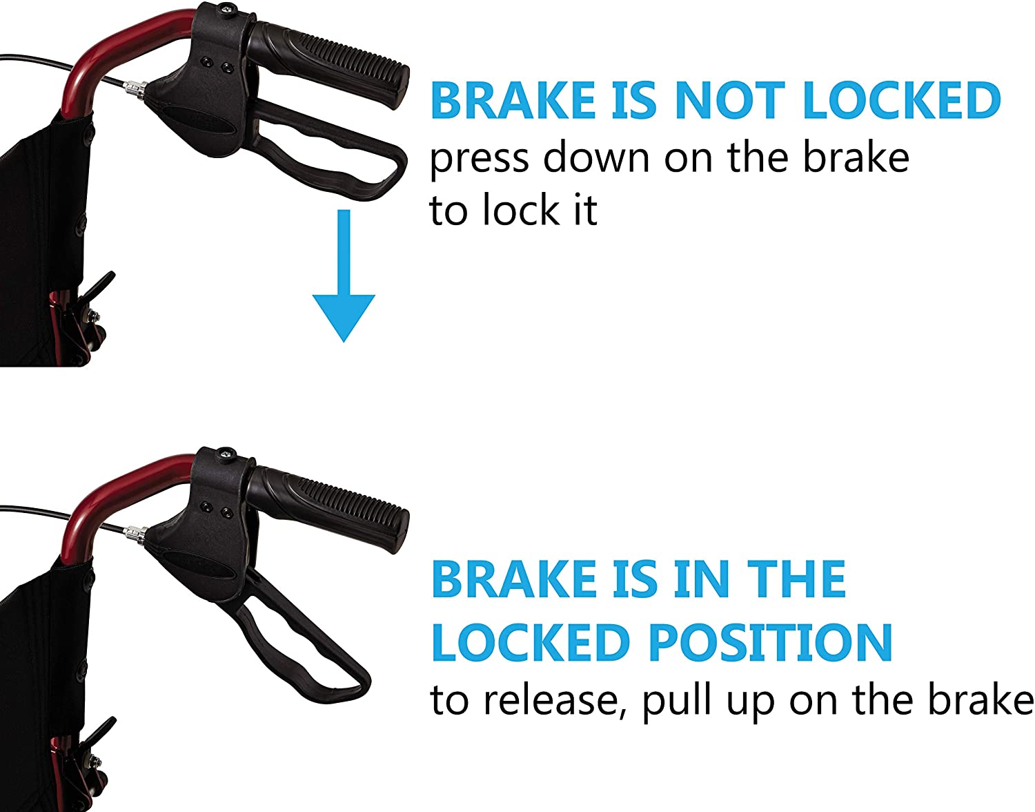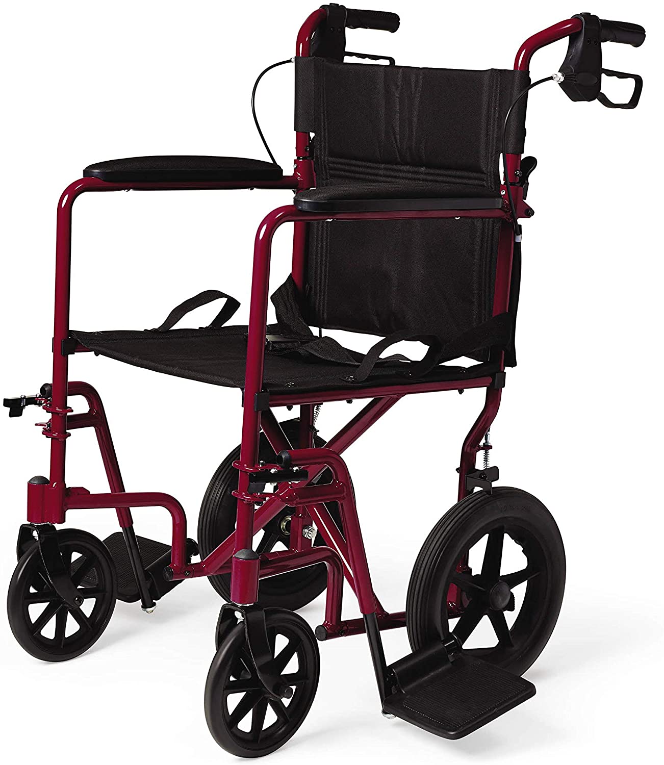 Transport chair with powder coated aluminum ultralight body is sturdy and has a weight capability of 300 lbs