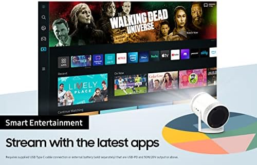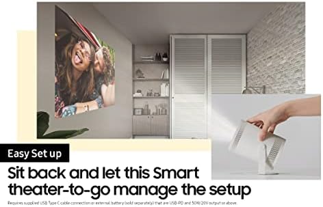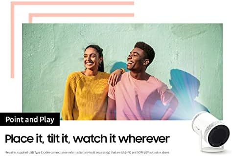 Take the large display expertise to go along with The Freestyle. This sensible theater-to-go strikes to the place the motion is. Simply level and play on the wall, ceiling and even your desk. The Freestyle mechanically units up your greatest image expertise, adjusting focus, keystone and leveling—on the picture measurement you need. You’ll be set to stream your reveals utilizing the Good TV capabilities, test your social feed, play video games, and listen to all of it in wealthy 360 sound. Collect your folks, your content material goes locations. Watch in Full Excessive Definition with The Freestyle, 2x sharper than different private projectors with HD. With roughly 8.3 million pixels and 1080X1920 decision, you possibly can sit up nearer than with HD, making all the pieces bigger, crisper and clearer.***** SmartThings delivers a colour expertise custom-made to your area with The Freestyle. Whether or not you’re projecting on a brick wall or wood desk, the app mechanically calibrates the colour temperature and brightness of your picture for the floor you watch on.***** *Contains Samsung SmartHub; exterior content material from the Micro HDMI port and appropriate gadgets with AirPlay 2, SmartThings or Faucet View. Voice Assistants and Apps are topic to alter. Some features require web connection by way of Wi-Fi or from a cellular system. **Requires provided USB Sort C cable connection or exterior battery (offered individually) which can be USB-PD and 50W/20V output or above. ***Optimum display sizes from 30″ – 100″ measured diagonally; based mostly on The Freestyle’s distance from the floor. ****Voice Assistants and Apps are topic to alter. Some features require web connection by way of Wifi or from a cellular system. *****Brightness varies based mostly on surrounding mild.