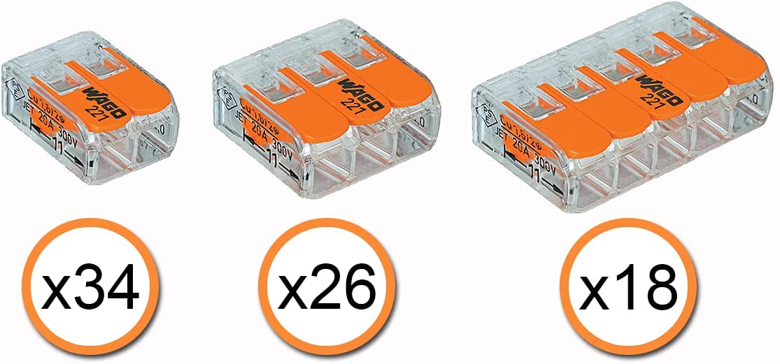 Consists of 34x 221-412 (2 conductor), 26x 221-413 (3 conductor), 18x 221-415 (5 conductor) with case