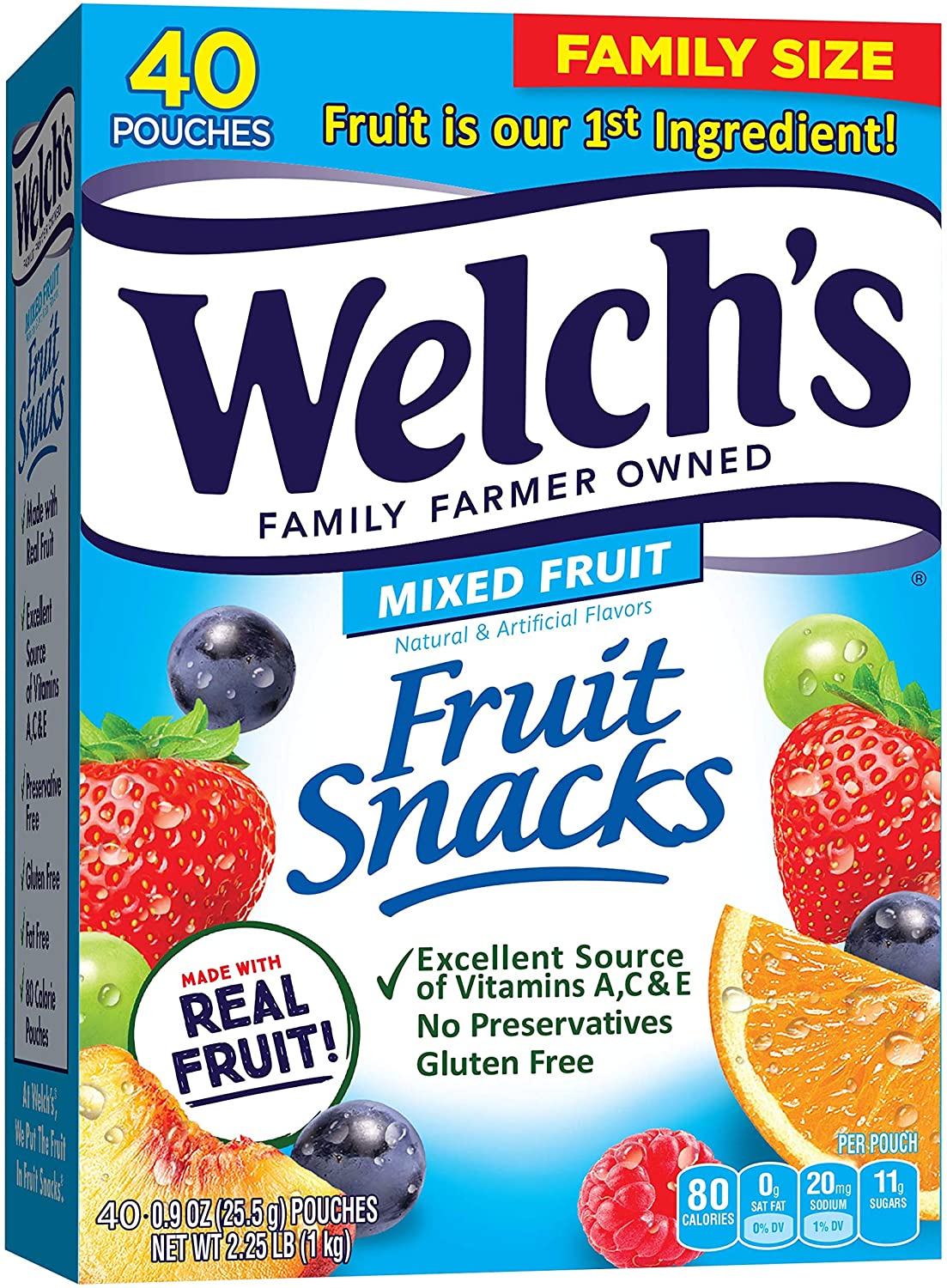 Welch’s Fruit Snacks, Mixed Fruit, Gluten Free, Bulk Pack, 0.9 oz Individual Single Serve Bags 40 Count (Pack of 1)