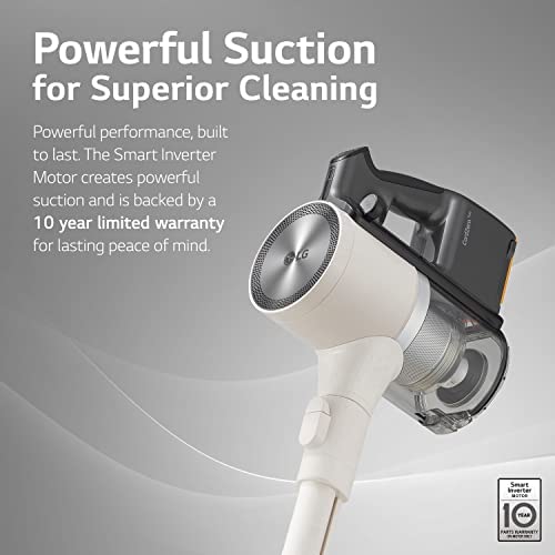 Highly effective Suction for Superior Cleansing – LG Good Inverter Motor supplies our greatest suction energy* throughout a spread of flooring sorts—and is backed by a 10-year restricted guarantee for lasting peace of thoughts. *Amongst LG’s cordless stick vacuums.
