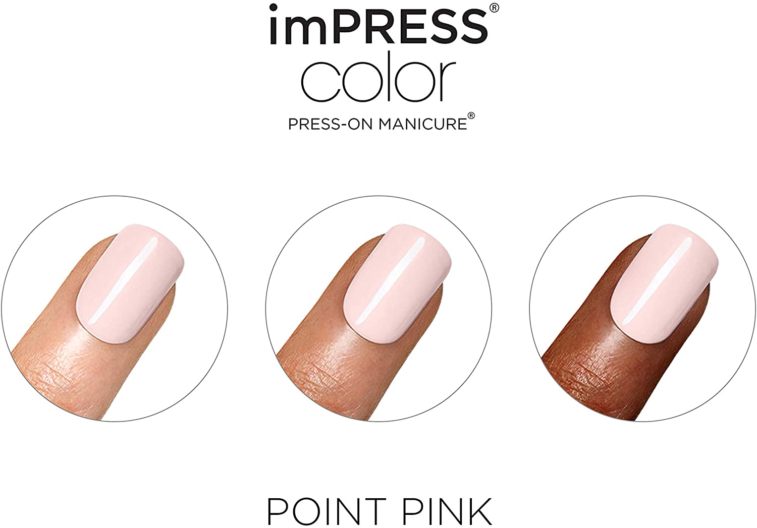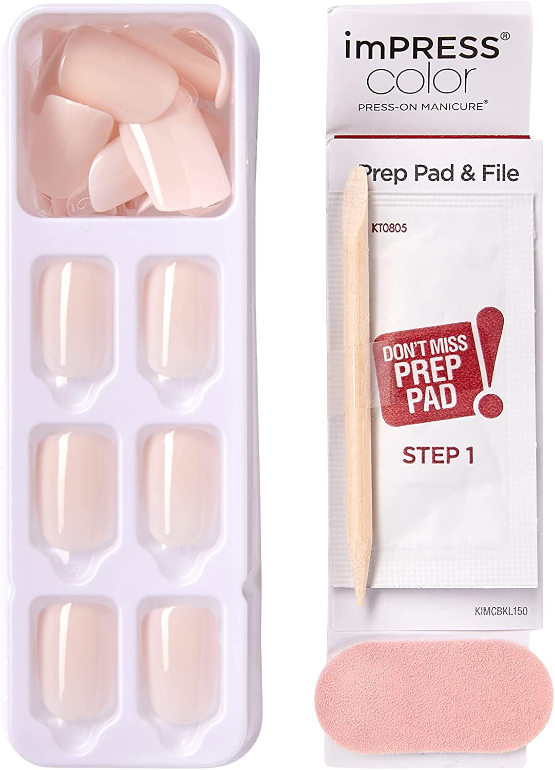 KISS imPRESS Color Press-On Manicure, Gel Nail Kit, PureFit Technology, Short Length, “Point Pink”, Polish-Free Solid Color Mani, Includes Prep Pad, Mini File, Cuticle Stick, and 30 Fake Nails