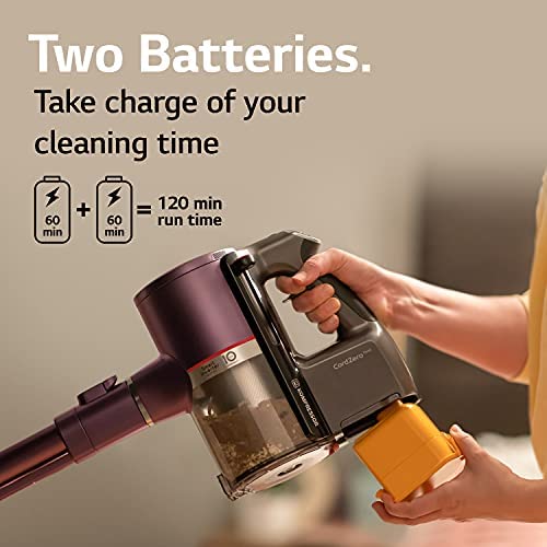 LG A9 cordless stick vacuum’s allow you to clear and cost on the identical with two quick-release batteries. The upgraded lithium-ion batteries are designed to take repeated fees and are available again for extra.