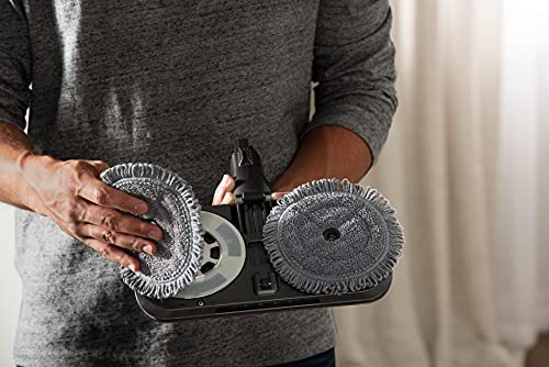 Energy Mop attachment cleans tile, hardwood or vinyl utilizing simply common faucet water—no particular options or harsh chemical compounds wanted. You management the quantity of moisture from Excessive to Low to Off (dry mopping) whereas the twin spinning microfiber pads do the work. Consists of 2 units of washable pads and detachable water tank for straightforward filling and emptying.