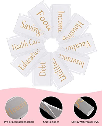 Worth Funds Binder Set – 10 pcs pre-printed clear zipper money envelopes for budgeting, 12 pcs expense tracker finances sheets, a 6-ring PU leather-based binder. An efficient all-in- finances planner system, excellent to make budgeting and cash financial savings.