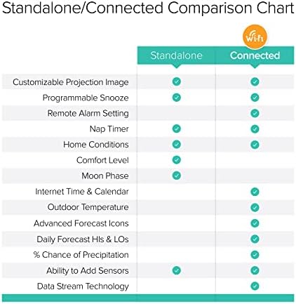 Operates as stand alone projection alarm clock; Prolonged options if related to Wi-Fi (requires 2.4GHz connection); Added options, resembling: AccuWeather forecast with Customizable information streams, like: Wind, Solar instances, UV index and extra; Out of doors temperature (web -no sensor is included in bundle); Customizable messages, & Extra notifications/icons, with rather more (Wi-Fi indicator icon shows fixed, when related); Distant entry utilizing free La Crosse View app (operates utilizing both iOS or Android OS)