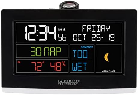 It’s a complete new form of projection alarm! Absolutely practical standalone clock with projection, alarm, nap timer and USB charging port. View temperature and humidity, moon part, and presents auto dimming again mild. Delicate contact buttons and projected time and temperature information onto your ceiling. Let our Wi-Fi Projection Alarm Clock give you the results you want! Merely join alarm to Wi-Fi and obtain our free La Crosse View app so as to add bonus options. Simply monitor house circumstances, customise alerts, view climate historical past, and even share with mates. We’ve partnered with AccuWeather to ship climate information on to the alarm exhibiting temperatures HI’s and LO’s, precipitation, forecast, and customizable messages, because of Knowledge Stream Know-how. Related options are non-obligatory, however a number of the coolest options come from its related functionality. Whereas related options are nice on their very own, the true energy of this clock lies in its skill so as to add any appropriate La Crosse View add-on sensors. With or with out our La Crosse View app, you will have the choice to develop your system with quite a few sensors for a whole house monitoring resolution. From true yard wind, rain, temperature and humidity, to water leak detection and extra, you may view this info proper out of your alarm. Add-on sensor info is viewable from La Crosse View app, permitting you to set alerts and observe developments on the go. La Crosse Know-how, bringing you the knowledge that issues most to you, Anytime, Anyplace!