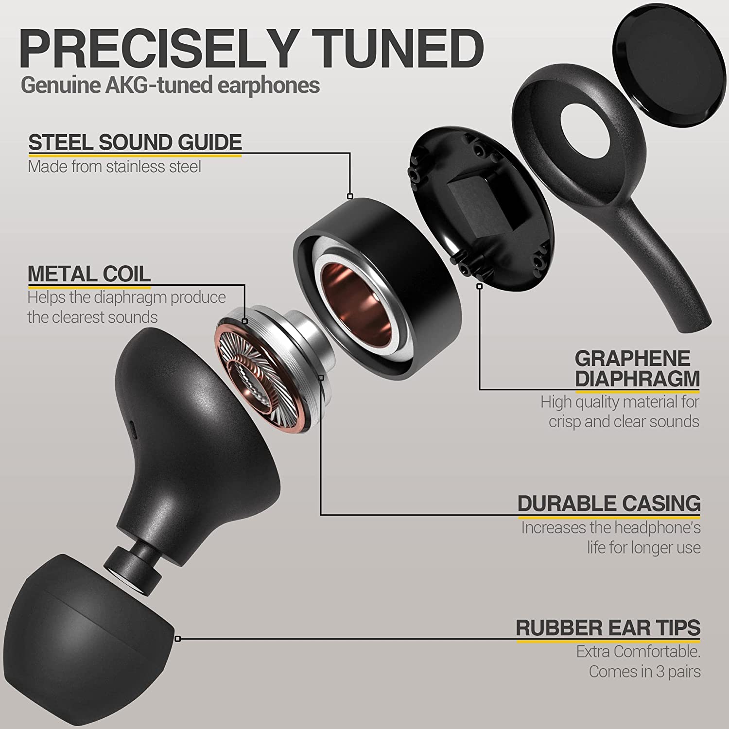 Earbuds Stereo Headphones designed by AKG Earphones present an extremely clear, authentic-sounding, and Earbuds Stereo Headphones designed by AKG Earphones present an extremely clear, authentic-sounding, and balanced output with premium sound high quality Inline microphone retains you related to all of your conversations whereas on the go along with quantity distant output with premium sound high quality