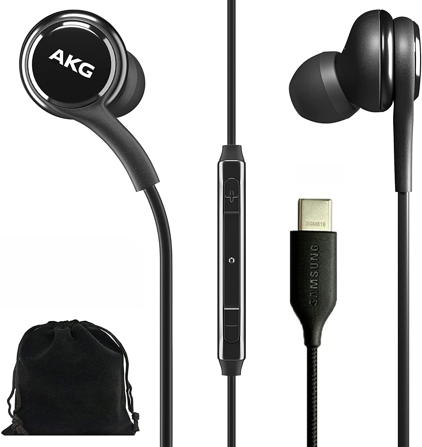 Samsung AKG Earbuds Kind-C contains Velvet Carrying Pouch Case Bonus – Black