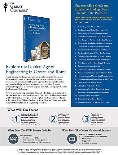 Famed for excellent thinkers, poets, artists, and leaders, historic Greece and Rome had been additionally residence to a few of the most inventive engineers who ever lived. Water techniques, roads, pumps, and lots of different developments grew out of the identical situations that produced new political establishments, gorgeous sculptures, excellent literary works, and empires that constituted a lot of the identified world. But the engineering exploits of the Greeks and Romans usually are not as celebrated as they should be, and so they have been lengthy discounted by some historians. New discoveries mixed with a reevaluation of proof present simply how intelligent our historic ancestors had been. In 24 lavishly illustrated lectures, Understanding Greek and Roman Expertise: From Catapult to the Pantheon offers you an in-depth appreciation for what the Greeks and Romans achieved and the way they did it. Your information is Dr. Stephen Ressler, a former professor at the USA Army Academy at West Level, a civil engineer, and a nationally honored chief in engineering training. This an interesting introduction to primary engineering ideas and the science behind them. The course additionally offers a brand new perspective on probably the most productive intervals within the historical past of civilization: classical antiquity. In case after case, you’ll find that engineering options reached throughout this period wouldn’t be surpassed for an additional thousand years or extra.LIFETIME MANUFACTURER WARRANTY. Your satisfaction is necessary to us, and we at The Nice Programs provide a lifetime substitute guarantee to purchasers of our merchandise from The Nice Programs on Amazon – if a DVD or CD disc ever breaks, warps, or will get broken, we’ll change it freed from cost. When you have any considerations together with your product, or need to request a substitute, please contact The Nice Programs by means of our Amazon storefront for extra data.