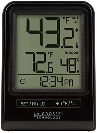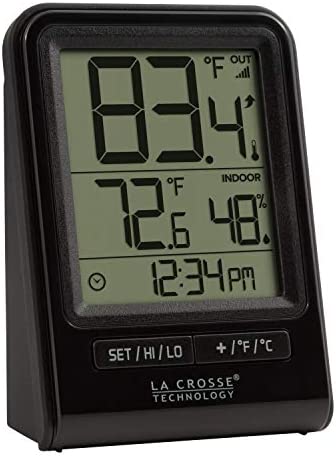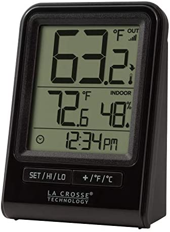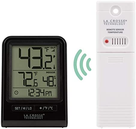 La Crosse Expertise’s wi-fi temperature station options indoor/outside temperature readings, indoor humidity, Hello/Lo temperature information, and development indicators all on an easy-to-read show. Lengthy distance wi-fi transmission ranges over 330 ft and reads outdoors temperatures right down to -40 F. Time show is adjustable in both 12-hour commonplace or 24-hour time format and versatile temperature readings in Fahrenheit or Celsius. Battery operated station with included sensor requires 2 AAA and a pair of AA batteries (not included) providing you with your climate at a look!