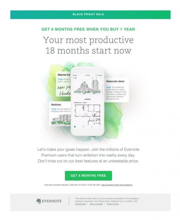 Encourage readers to open and interact along with your e-mail through the use of a clear and easy-to-navigate format. Begin with a outstanding header showcasing your major supply, adopted by sections with eye-catching product photographs, transient descriptions, and a well-placed call-to-action button. Right here’s an incredible instance from Evernote: