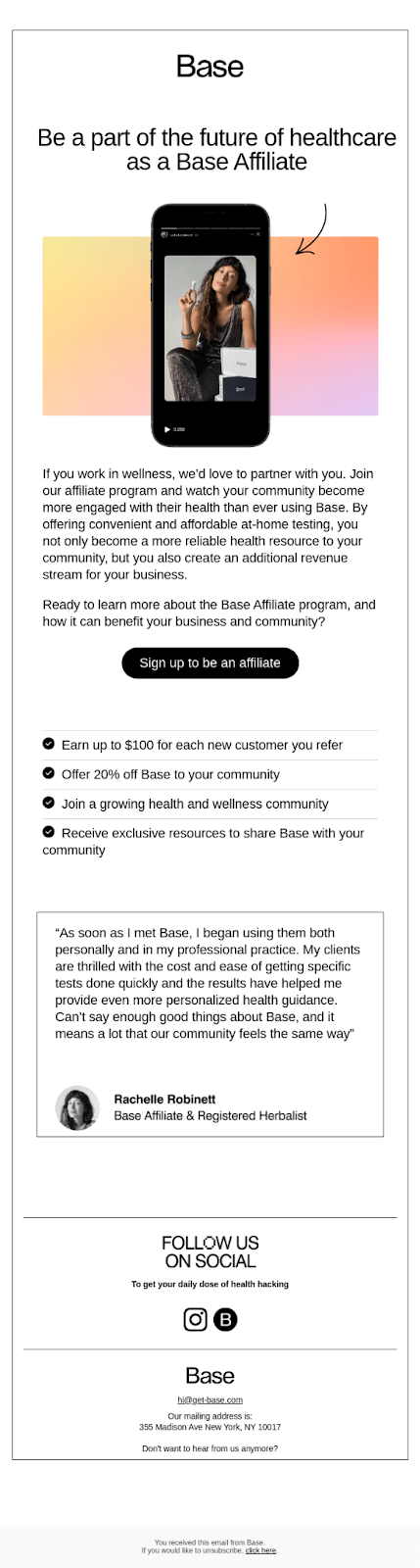 This electronic mail by Base is an instance of how official companies attain out to potential associates to advertise their associates program.