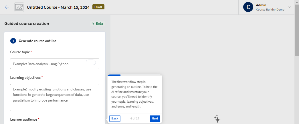 Enter a immediate about your course, and the course builder will generate seven modules. The platform helps textual content, audio, video, interactives, and reside lesson supply. Alternatively, you may construct your course from scratch utilizing the course navigator.