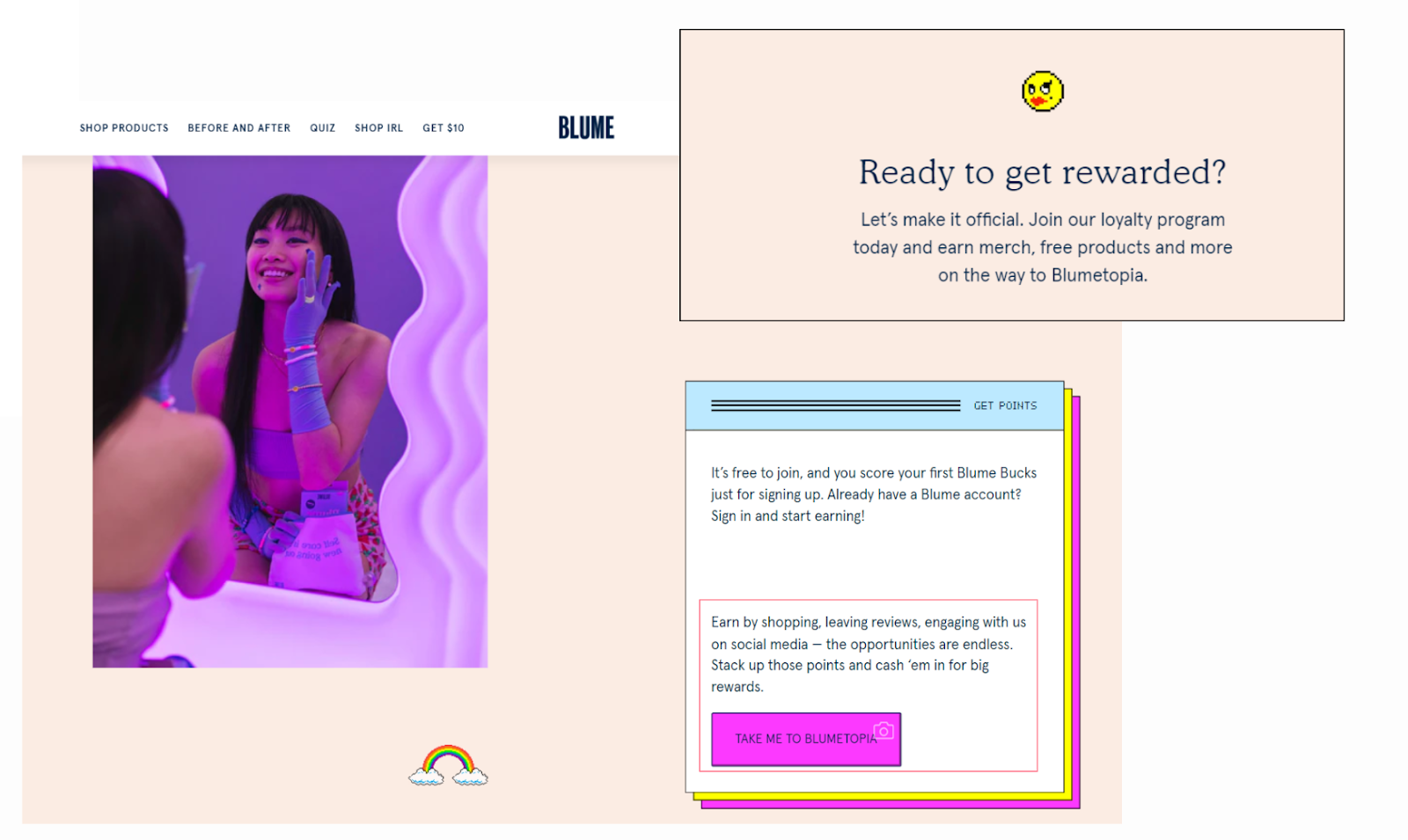It’s also possible to run a loyalty program that mixes components of every construction. For instance, magnificence model Blume runs a point-based and tiered loyalty program known as Blumetopia: