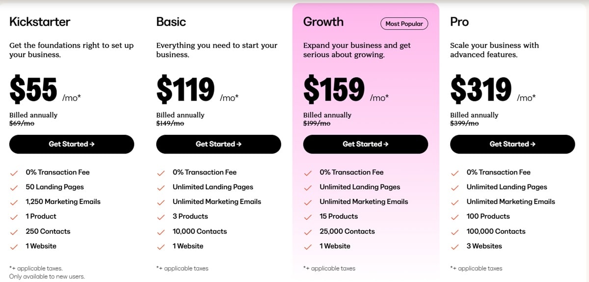 For extra capabilities, you’ll have to spend at the very least $119. That permits you to host three merchandise, have 10,000 contacts, and get limitless touchdown pages and advertising emails.