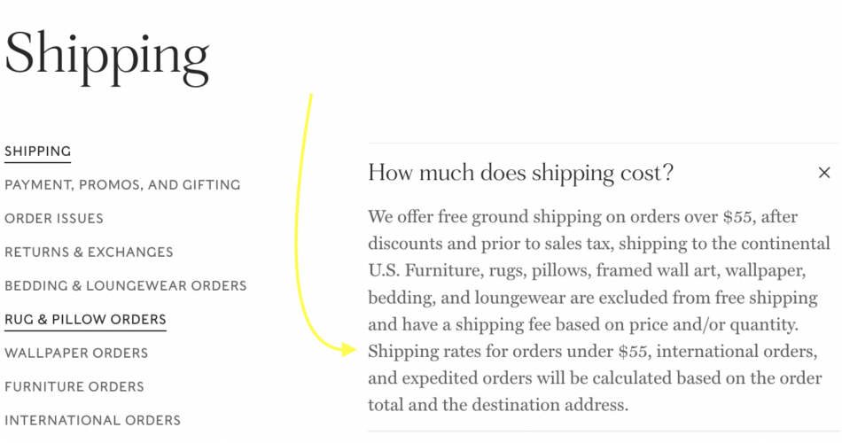 Set your self up for fulfillment by making your delivery insurance policies crystal clear. Rifle Paper Co., for instance, outlines precisely what qualifies without cost delivery and what doesn’t.