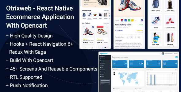 Otrixweb E-commerce React Native Full Utility with Opencart is a full-featured e-commerce answer