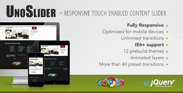 UnoSlider is a jQuery content material slider plugin with an limitless transition animations (actually, limitless!) and a variety of a options like contact enabled, cell optimized interface, animated layers, responsiveness and lots of different options.