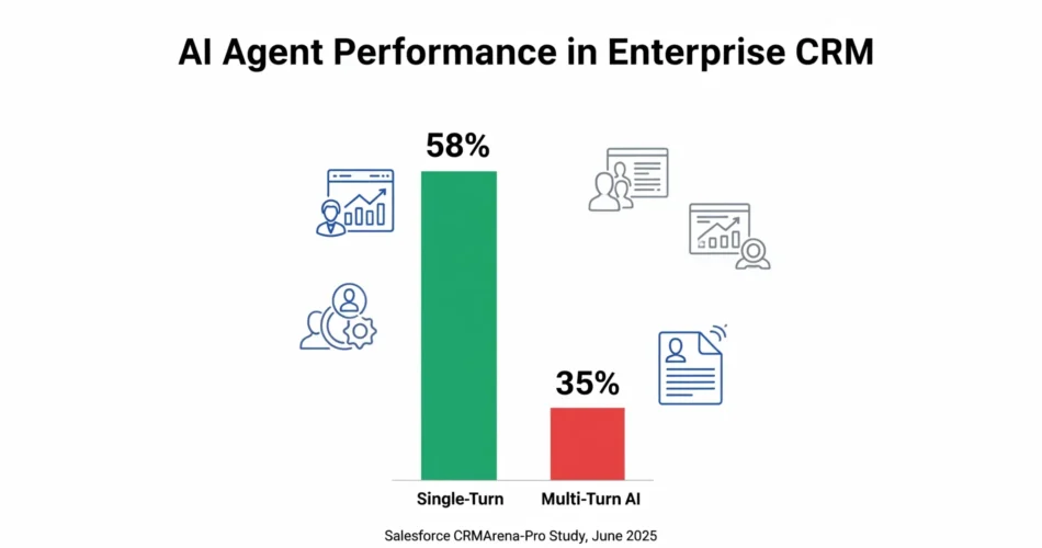 What: CRMArena-Professional benchmark analysis revealed that main AI brokers obtain solely 58% success in single-turn enterprise duties, dropping to 35% in multi-turn situations