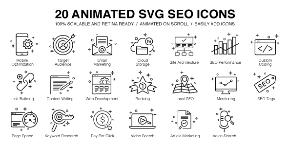 100% Scalable and Retina Prepared / Animated on Scroll / Simply Add Icons.