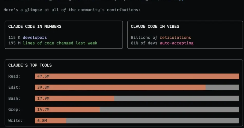 What: Claude Code, a terminal-based AI coding assistant, processed 195 million traces of code in a single week whereas demonstrating estimated annual income potential of $130 million based mostly on present adoption patterns and pricing assumptions.