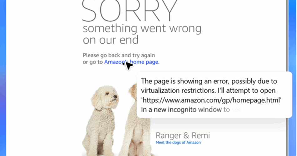 Merely, the agent wasn’t in a position to do something on Amazon in any respect. It bumped into the “503 error” web page, amusingly accompanied by an image of a canine. Each try and get across the error web page led to the identical error web page, albeit with totally different canines.