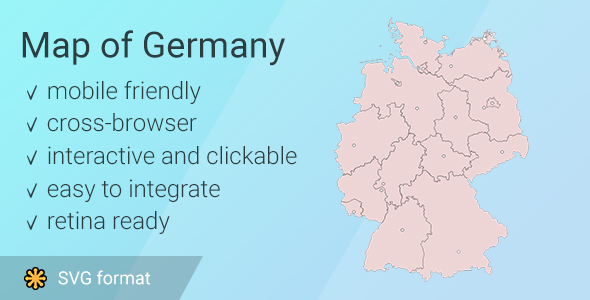 Interactive clickable and responsive map of Germany with areas popup on hover. This map runs with javascript (jQuery) based mostly on Scalable Vector Graphics (SVG), So it may be scaled to any dimension with out dropping its high quality. The interactive template of the map of Germany offers you a straightforward method to set up and customise knowledgeable wanting interactive map with 16 clickable areas. You possibly can embed the map in your web site and hyperlink every area/metropolis to any webpage or make hover popup with data.