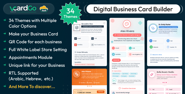 Constructed as a whole SaaS answer, it contains multi-tenant structure with versatile subscription plans, 30+ built-in fee gateways (Stripe, PayPal, Razorpay), and Tremendous Admin controls for limitless platform administration. Superior options embody customized area help, multi-language capabilities (15+ languages), password safety, appointment scheduling, and AI-powered content material era. Your digital playing cards are all the time in your pocket, immediately updatable by our user-friendly dashboard, eliminating the necessity for reprinting conventional enterprise playing cards. Whether or not you’re launching your personal digital card service or managing enterprise networking, vCard SaaS scales effortlessly whereas producing recurring income by subscription fashions.