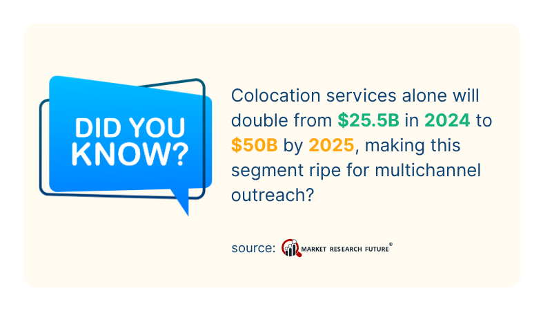 MRFR stories that colocation providers alone will double from $25.5B in 2024 to $50B by 2035, making this phase ripe for focused, multi-touch outreach.