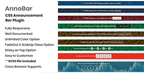 AnnoBar is a pure HTML-CSS primarily based Announcement Bar Plugin. its construct with HTML5, CSS3 and SCSS. It’s totally responsive and extremely customizable. you simply use pre-made layouts. you can also made your customized layouts with AnnoBar-elements. It is vitally simple to import in your template. that is appropriate for any kind of web site Template or touchdown web page. It isn’t wordpress plugin.