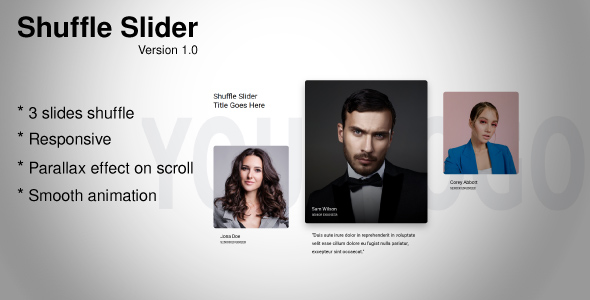 Shuffle slider is a jQuery plugin with 3 slides, clean animation, parallax
