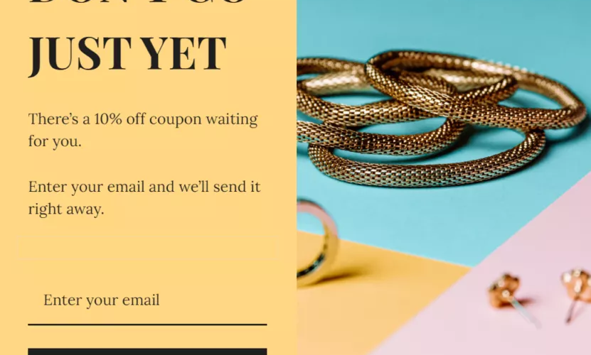 Try these Shopify exit-intent popup examples for design, copy, and provide concepts: