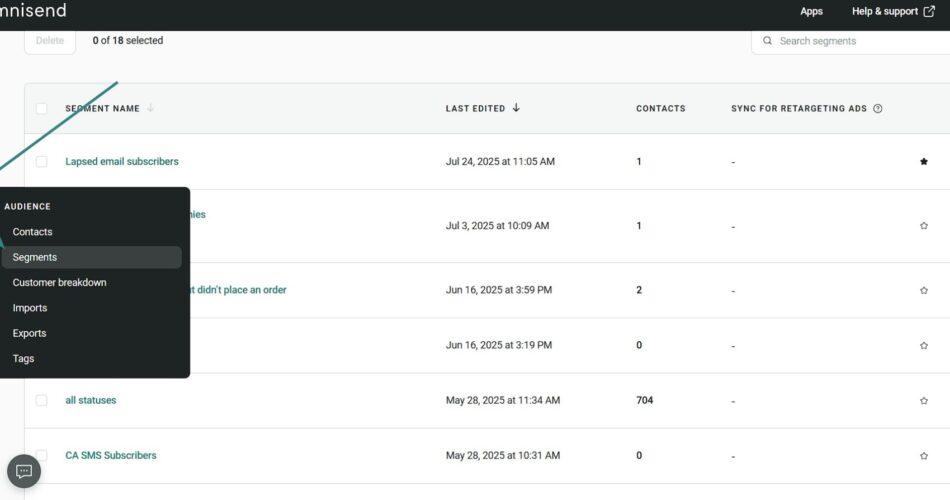 - Navigate to Audiences in your Omnisend dashboard