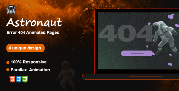 Astronaut – Animated 404 Error Pages with Parallax & Interactive Results
