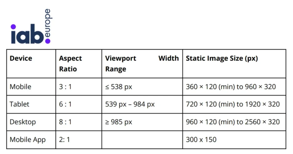 The Versatile Advert Measurement Tips tackle this fragmentation by way of standardized specs. Based mostly on an answer developed by Tesco Media and refined by way of IAB Europe requirements workshops, the proposal introduces 4 core side ratios masking cell, pill, desktop, and cell app environments.