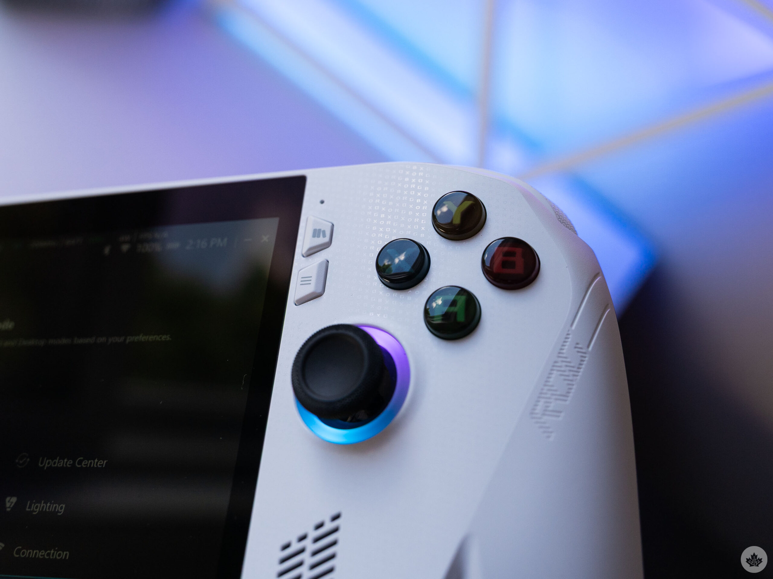 The inputs are additionally typically good, although there’s room for enchancment. The bumper and set off buttons are glorious and comfortable, whereas the sticks are well-positioned and clean. There are RGB gentle rings across the sticks, however these may be turned off. Sadly, I’ve already seen the left stick shedding flecks of black plastic, which is especially annoying on the white handheld and raises considerations over longevity and stick drift.