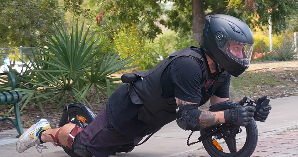 Together with his legs connected to the again wheel, he balances and steers because the hub motor pulls him ahead. The throttle in his proper hand lets him go as much as 20mph, which he examined throughout early experiments with a skateboard as a brief entrance wheel. The ultimate model with the entrance wheel and aero bars was extra steady and he may journey for longer. However stability is relative; Carlini notes the swing arm is near delicate areas and the low floor clearance will drag his toes. Preserve thoughts that there aren’t any brakes, so stopping is as much as gravity or luck.