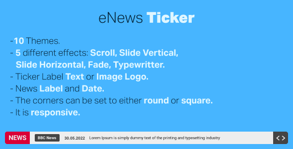 eNews Ticker is a strong, versatile, quick, straightforward to make use of and customise information ticker.