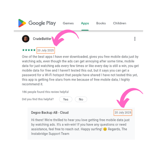 With a stable 4.1‑star ranking, the crew goes past simply monitoring suggestions—they actively interact with their viewers. By responding to consumer feedback—each reward and complaints—typically throughout the identical day, Instabridge reveals that consumer expertise is a prime precedence.