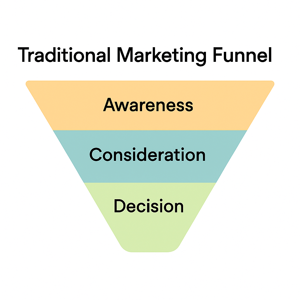 The traditional funnel is linear. It begins on the prime with Consciousness, the place potential clients first encounter your product or model. It narrows by means of Consideration, as they analysis, evaluate, and consider your providing in opposition to others. Lastly, it results in Conversion, the place the prospect turns into a paying buyer.