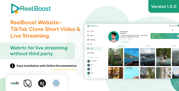 ReelBoost is a robust brief video sharing software constructed with fashionable design and feature-rich performance, just like TikTok. It supplies seamless video creation, sharing, and monetization instruments for customers, whereas additionally giving admins full management through an built-in backend panel.